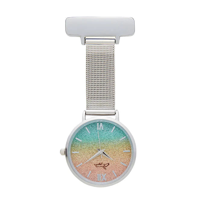 Annie Apple Nurses Fob Watch - Aurora - Silver & Rainbow - Mesh - 35mm