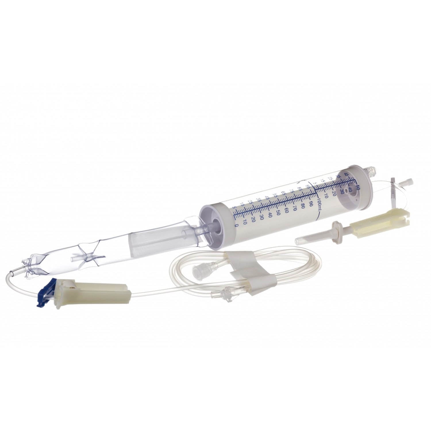 Buretrol blood administration set, 150ml burette flexible double drip chamber, 200ml filter Y-injection site, rotary male luer with hydrophobic cap. The upper section of the drip chamber contains a 150-200µm filter.