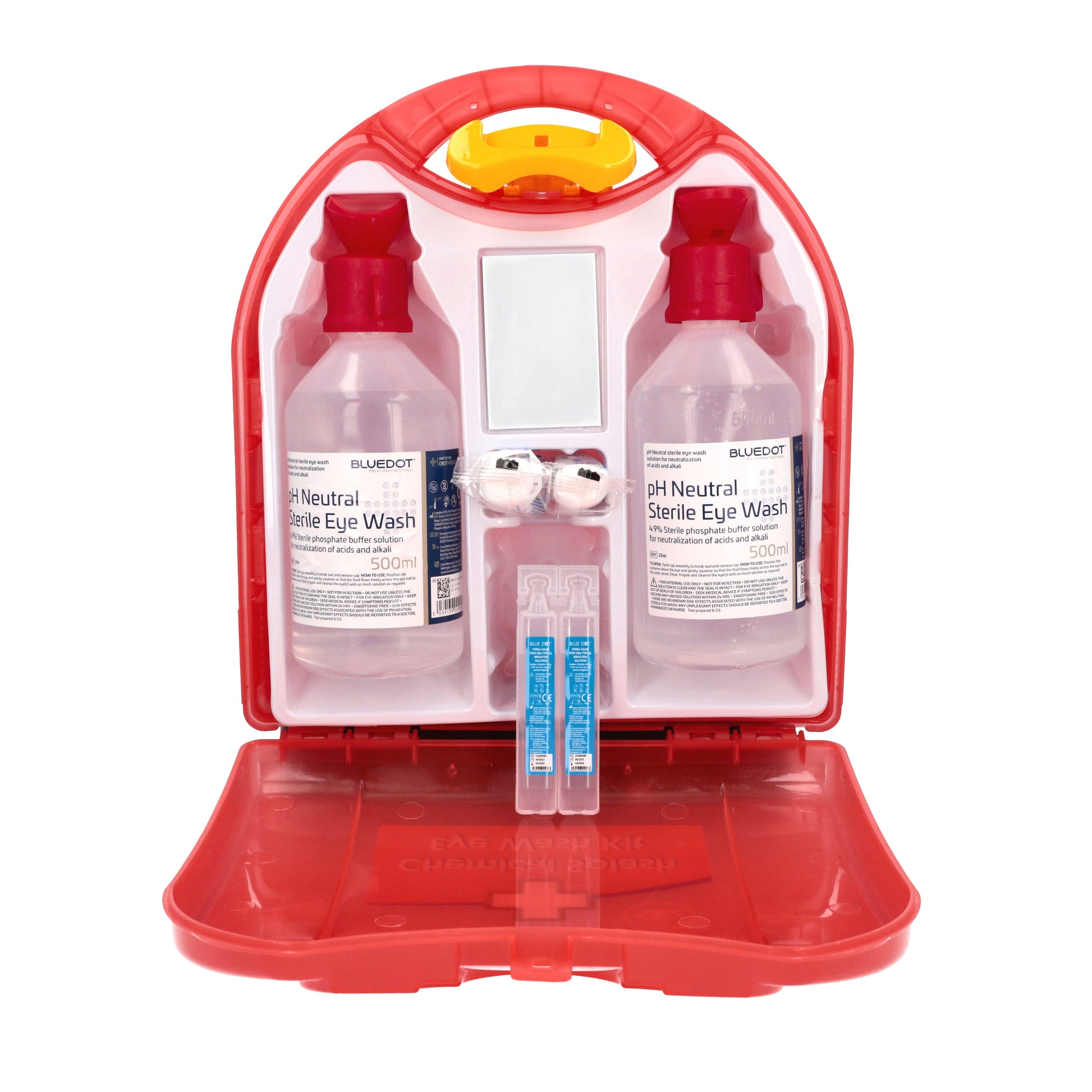 Be prepared for chemical-related eye emergencies with the reliable and convenient Blue Dot Chemical Eye Wash First Aid Kit.