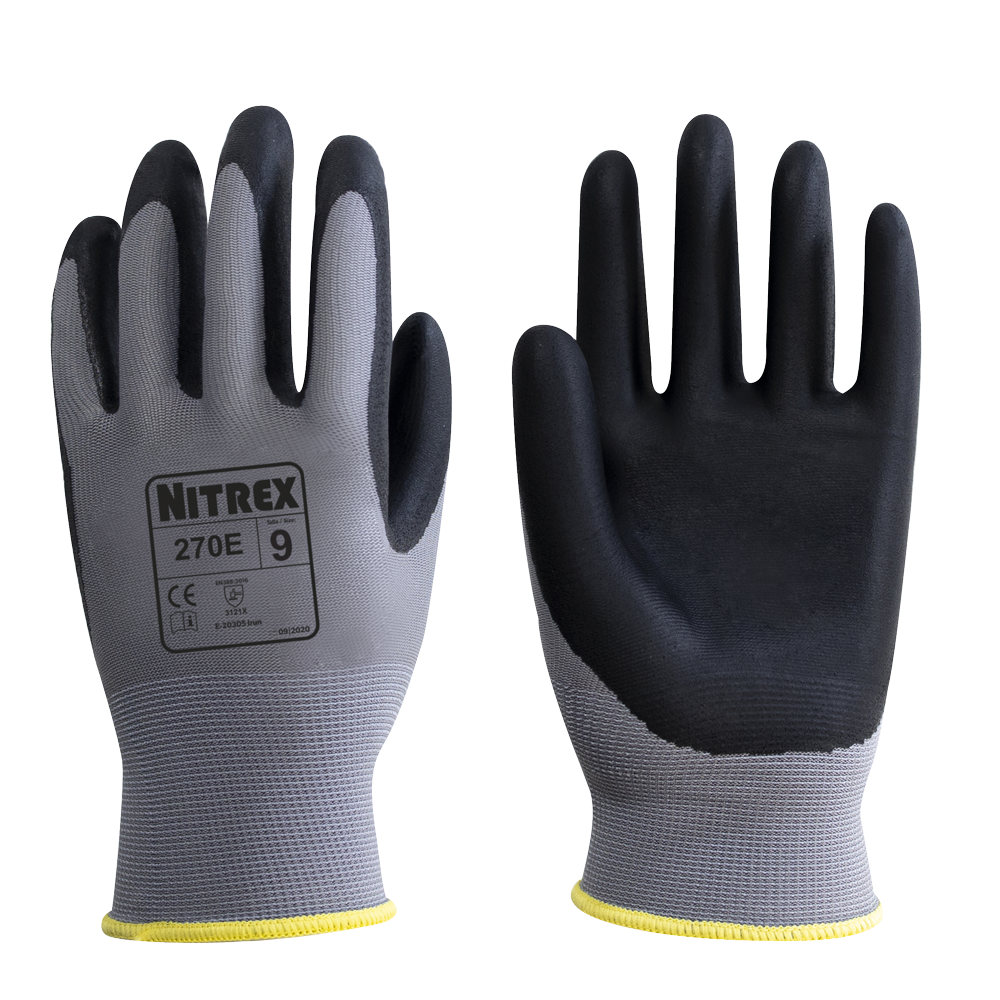Nitrex 270E nitrile palm coated gloves are the ideal safety solution for all your general handling applications. With exceptional grip in dry, wet, and oily conditions, as well as good abrasion protection, Nitrex 270E keeps hands safe without compromising on performance.