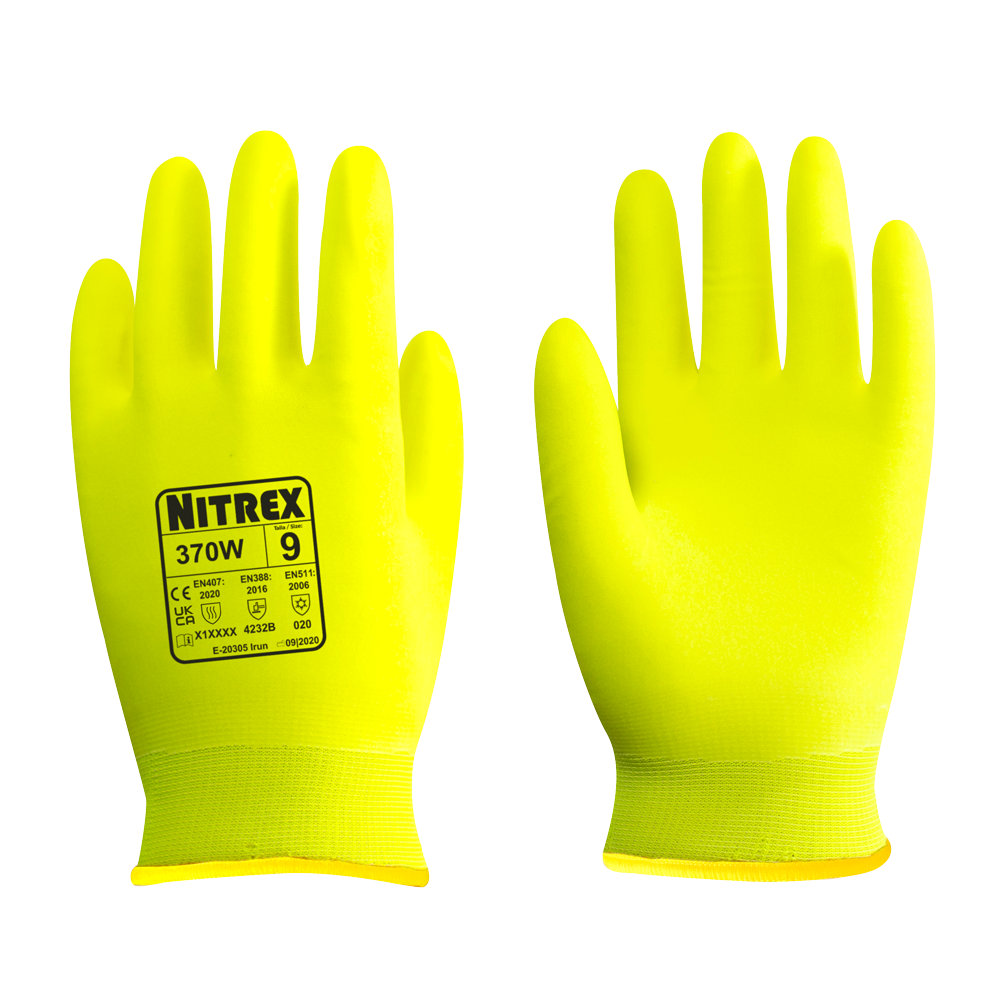 Tested to European standards EN388, EN511 (for protection against cold) and EN407 (for protection against thermal risks of heat), our Nitrex 370W Thermal Work Gloves provide workers’ hands with protection against both hot and cold hazards, as well as tears and abrasions, without compromising on comfort or performance. For freedom of movement, long-wearing comfort, incredible durability, and superior protection, Unigloves Nitrex 370W premium thermal gloves are the ideal thermal protective and water-resistant safety glove solution for your workplace.