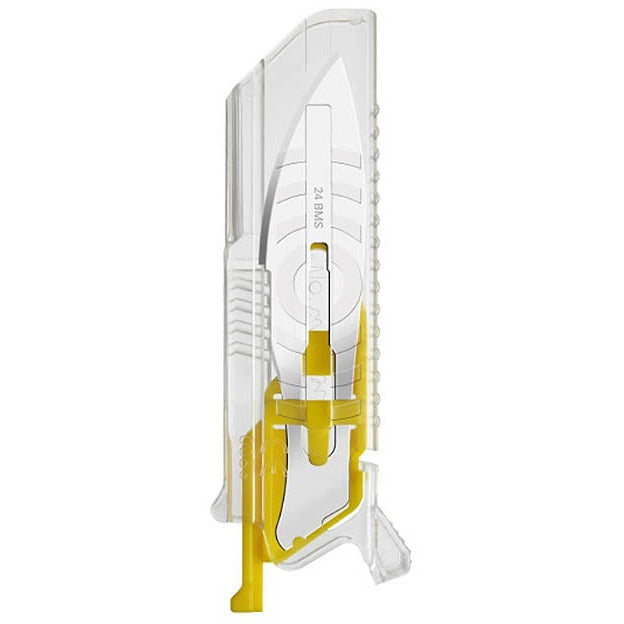 Available sterile in individual paper film packs and boxed in units of 50. Slightly larger than the No.23 blade, the No.24 is more semi circular in shape and is again sharpened along it's leading edge and is used for making long incisions in general surgery and also in autopsy procedures. The No.24 KLEEN BMS fits handles 4, 4L, 4 Graduated & 6B