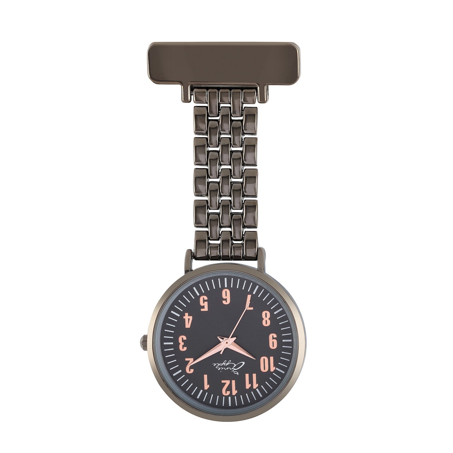Annie Apple Nurses Fob Watch - Aurora - Rose Gold/Gunmetal - Link - 35mm