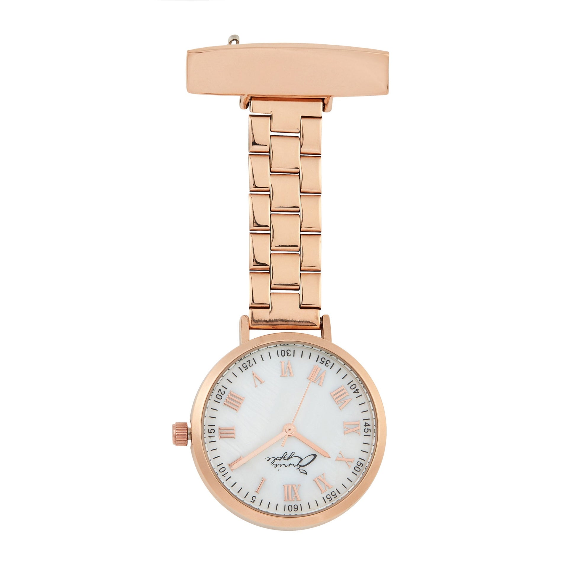Annie Apple Nurses Fob Watch - Meraki - Pearl/Rose Gold - Link - 35mm
