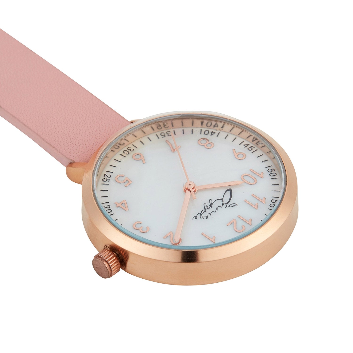 Annie Apple Nurses Fob Watch - Meraki - Pearl/Rose Gold/Pink - Leather - 35mm