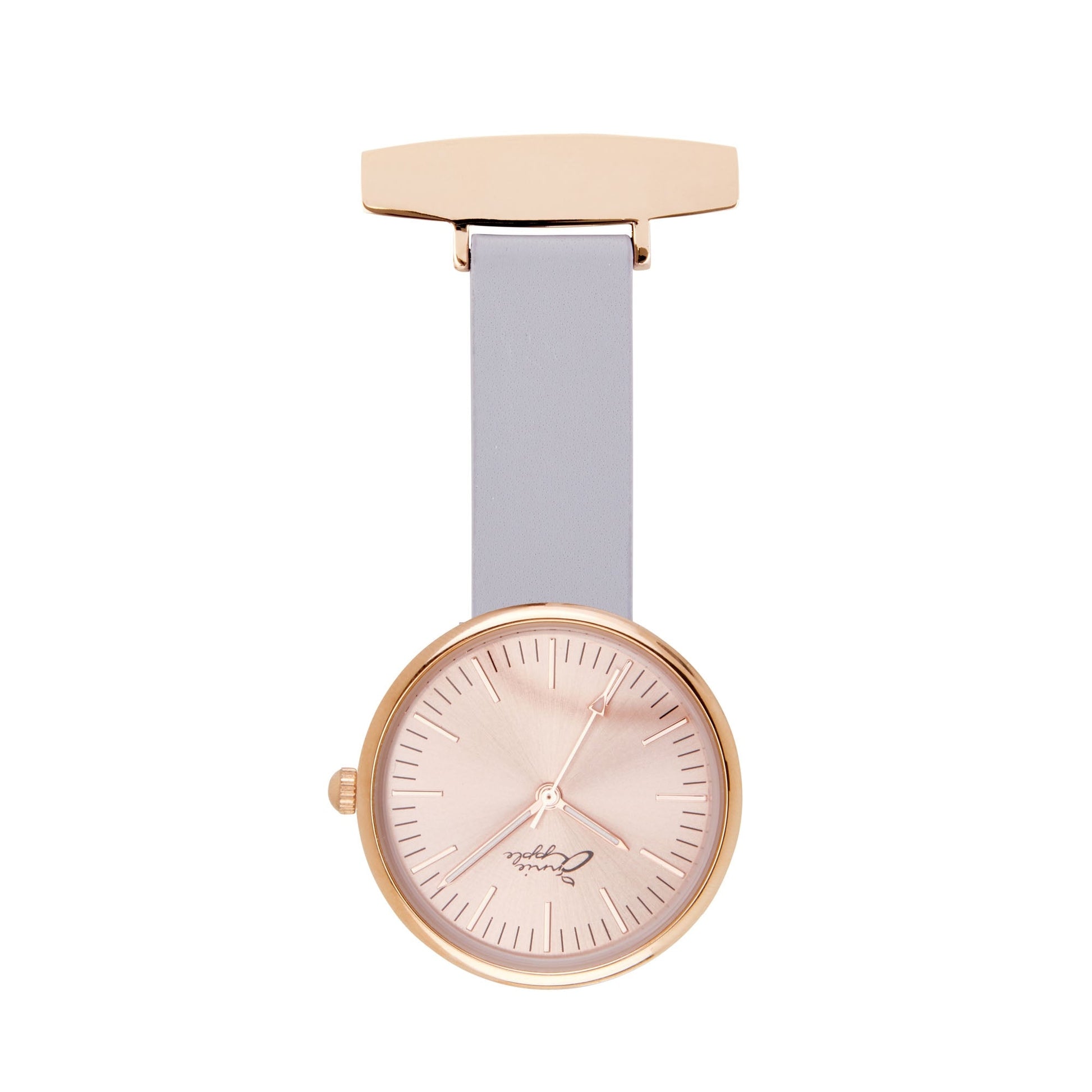Annie Apple Nurses Fob Watch - Venus - Rose Gold Mesh - Lilac Leather - 35mm