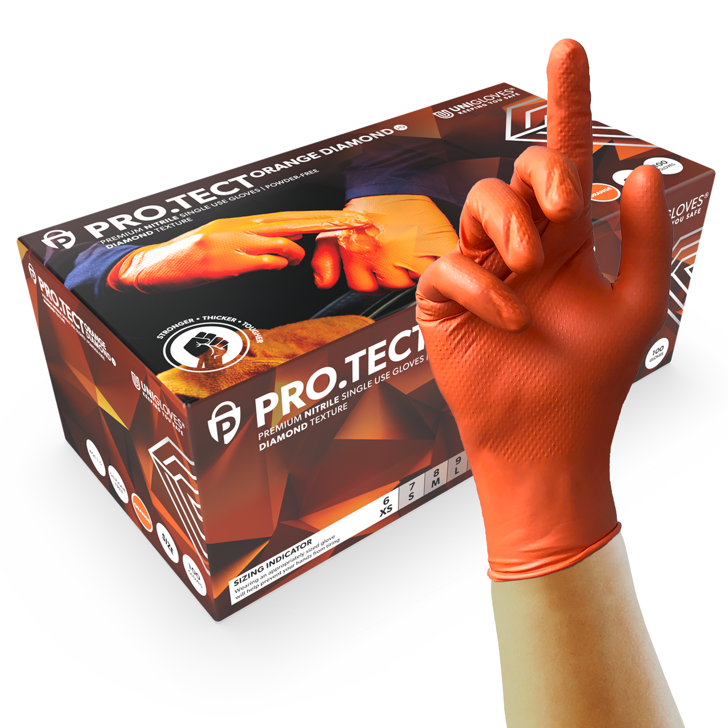 Meets Medical Standards for Pinholes: PRO.TECT Orange Diamond HD gloves adhere to medical standards for pinholes, offering reliable barrier protection against contaminants and pathogens.