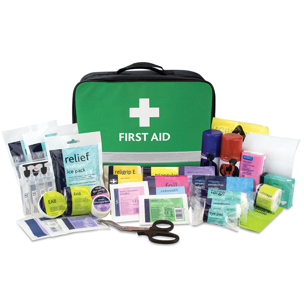 An ideal sports run-on kit, fully loaded with 88 pieces of high value contents. Easy recognition compartments organise the kit for fast product selection in an emergency. Complete with carry handles, shoulder strap and reflective strip.