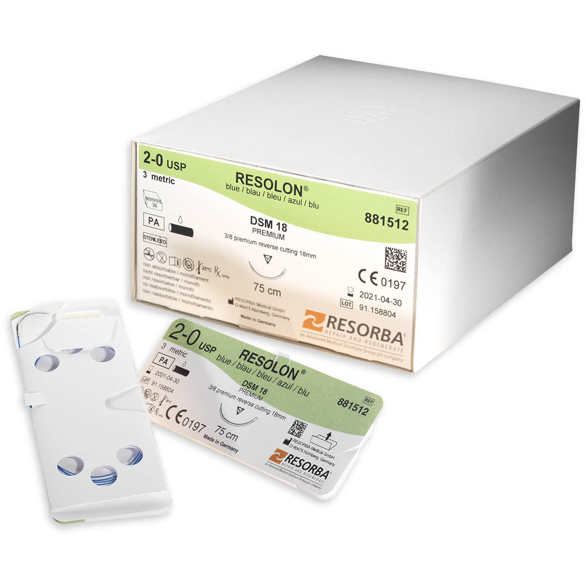 RESOLON is a monofilament Polyamid 6 thread. This suture material was developed especially for RESORBA. RESOLON undergoes special treatment during the manufacturing process. This accounts for RESOLON's above average softness and flexibility, even in a dry, sterile condition. This results in good handling and knotting qualities with simultaneous optimum knot tensile strength. While the indications for RESOLON are limited due to its hydrophilic nature, RESOLON is particularly well-suited for skin sutures.