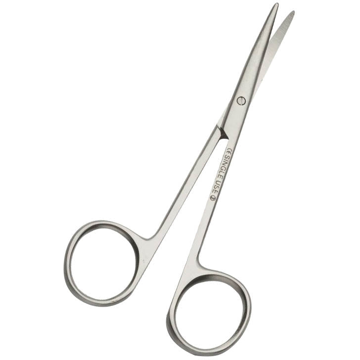 Single Use Straight Strabismus Scissors with blunt/blunt blade ends, used specifically during the treatment of Strabismus (ocular misalignment) and other types of eye surgery. Manufactured from medical grade surgical stainless steel. Supplied in an easy to open, sterile pack.