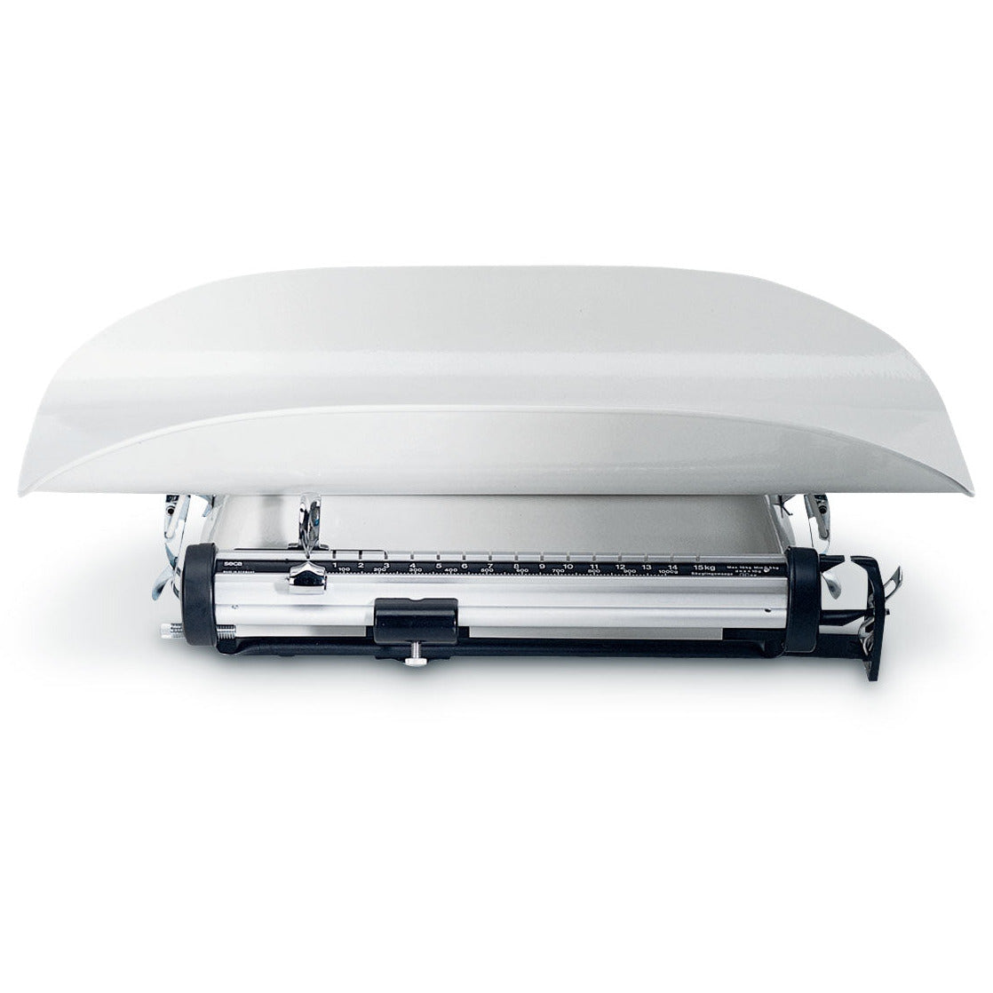 The gently curved weighing tray keeps the baby safe during every step of the weighing process. The resetting function that puts the scale back to zero lets the user reliably determine net weight.