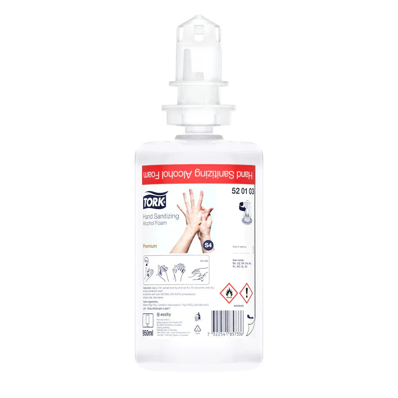 Help prevent infections with Tork Hand Sanitising Alcohol Foam. With 75% w/w denatured alcohol (ethanol + isopropanol). It is ideal for sanitising hands in offices and other public areas, or wherever waterless hand hygiene is needed. Conforms to European Standard EN 1500 and EN 14476 (enveloped virus). Suitable for Tork Skincare dispensers, which are proven Easy to use and provide good hand hygiene to all users.