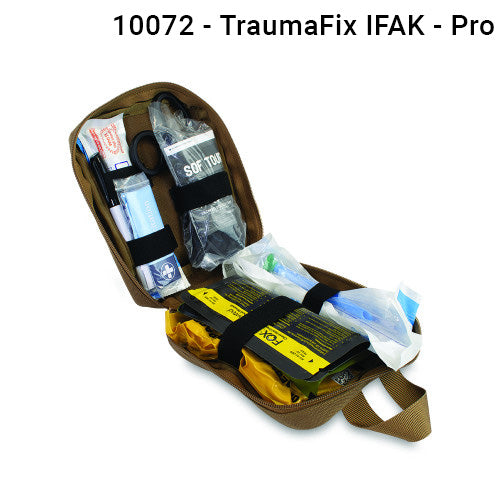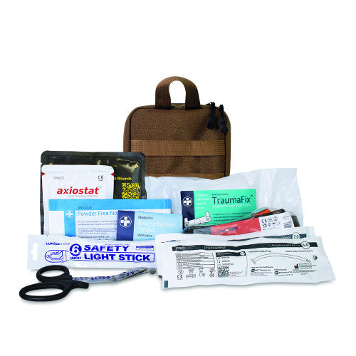 The IFAK (Individual First Aid Kit) is designed for personal issue in high-risk workplaces and roles such as police, military, security services and hazardous outdoor activities such as tree surgery and agriculture. Compact and convenient enough to carry for daily preparedness for immediate emergency first aid - Easy to attach to a belt or webbing and compatible with molle systems. The IFAK Contains vital equipment to treat traumatic injuries, control bleeding, preserve airways and stabilise patients until emergency services arrive.