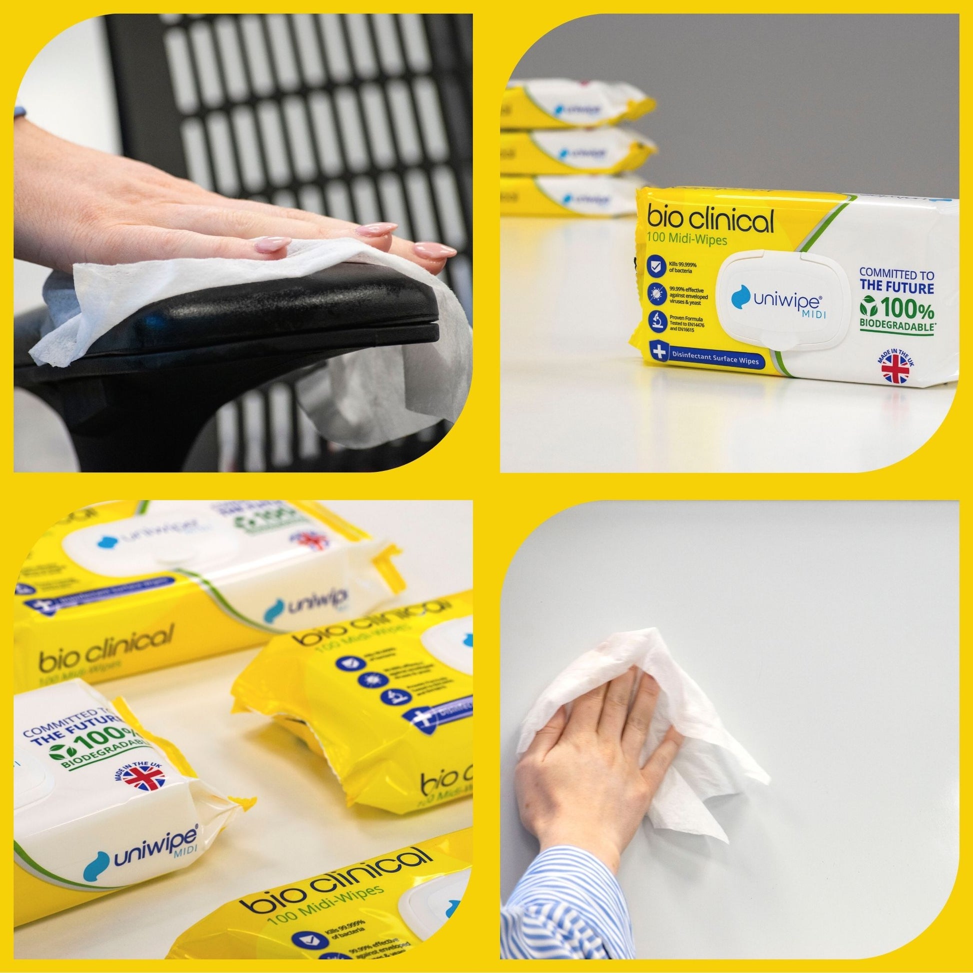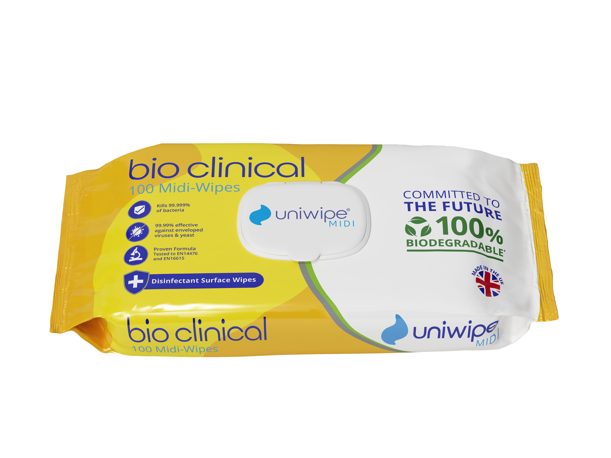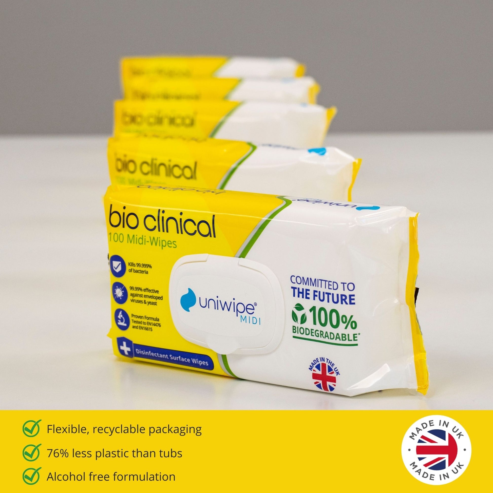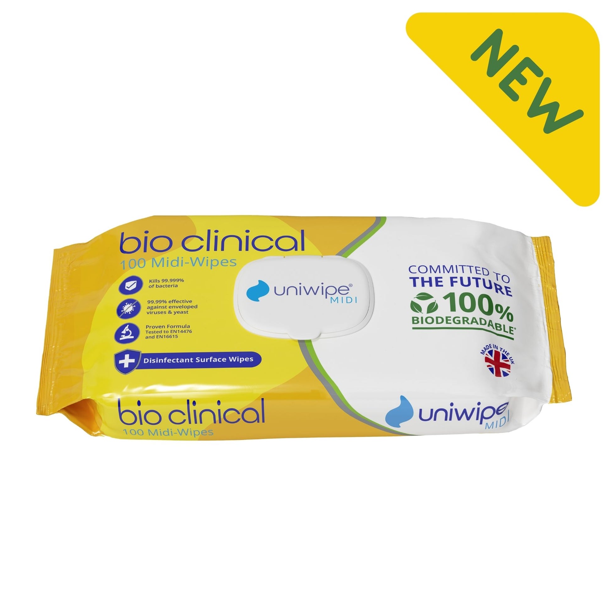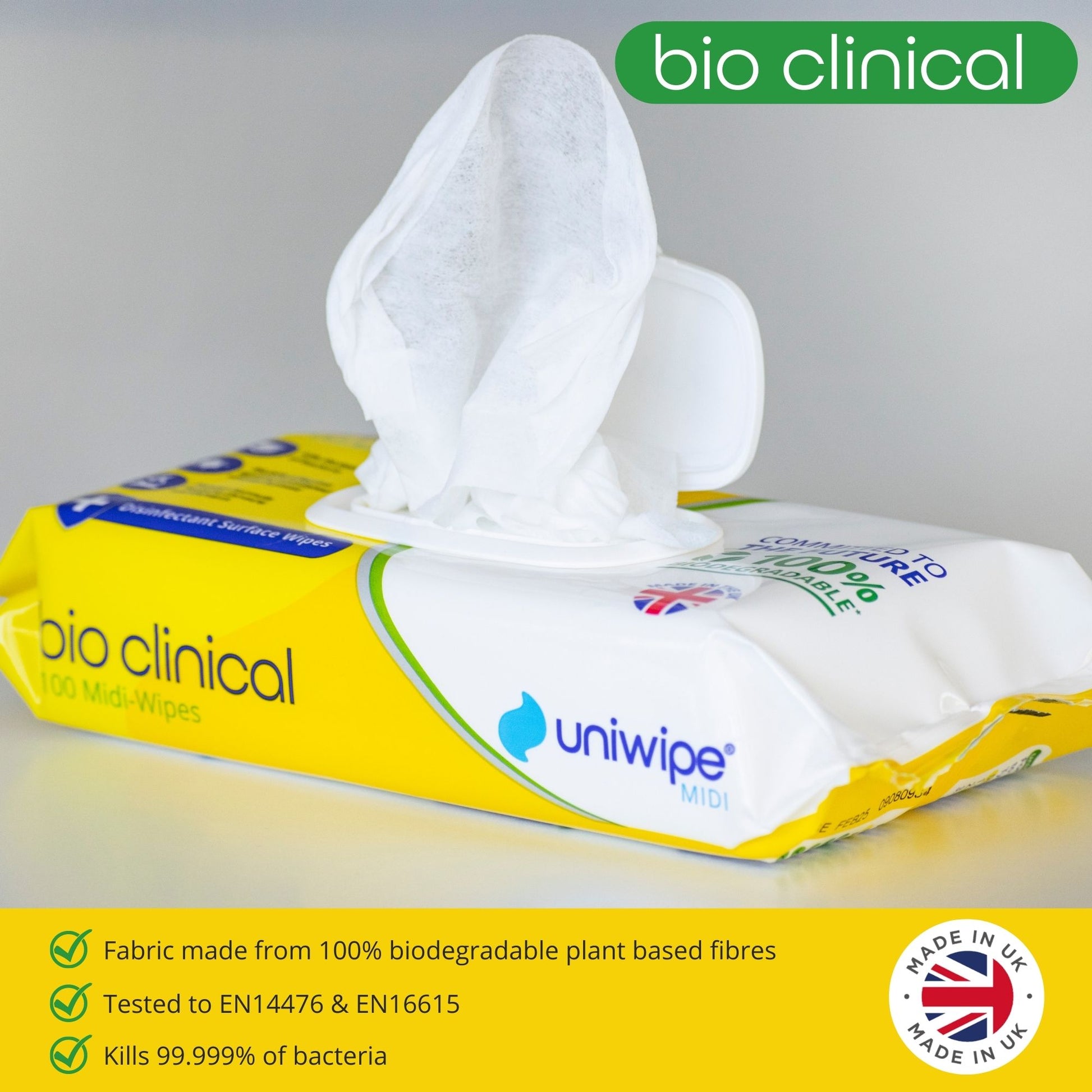 Uniwipe - Bioclinical Disinfectant Surface Wipes 100% Biodegradable Wipes (Pack of 100)
