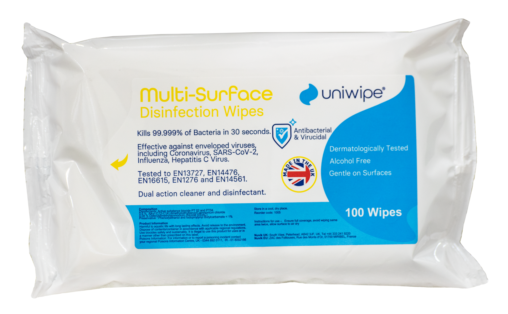 Highly effective disinfectant cleaning wipes with outstanding microbiocidal performance, Uniwipe Multi surface Disinfectant wipes are active against bacteria, fungi, and viruses.