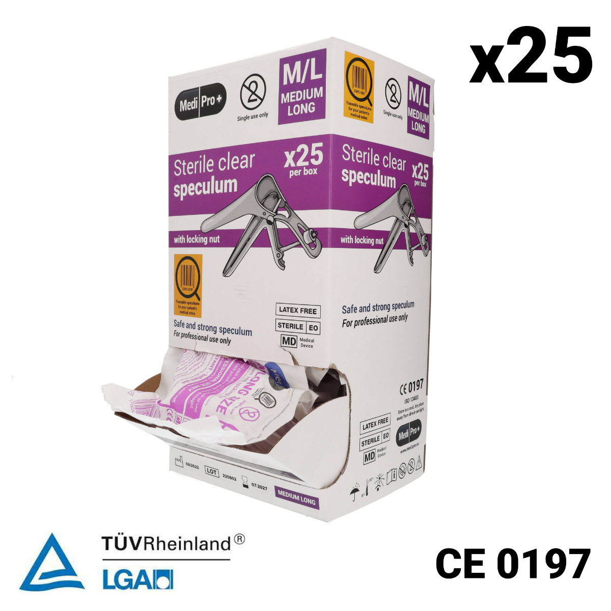 Medipro Vaginal Speculum with Lock - Box of 25 - Medium Long
